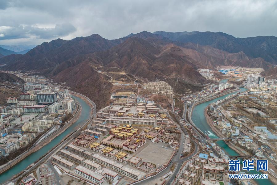 这是2月17日拍摄的西藏昌都市(无人机照片)。扎曲河、昂曲河在此汇流成澜沧江。新华社记者孙非摄