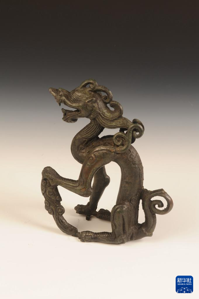 黑龙江省博物馆内展示的“镇馆之宝”铜坐龙(黑龙江省博物馆提供)。