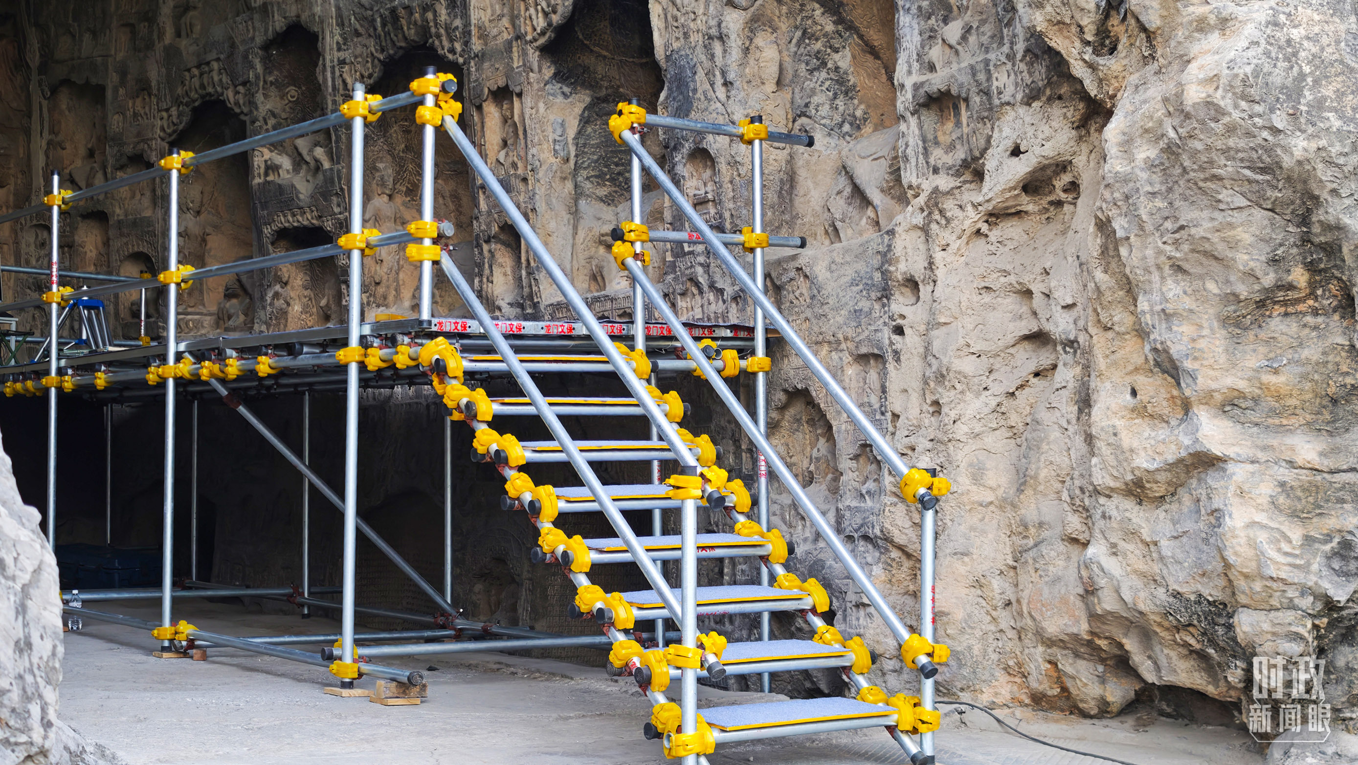 龙门石窟古阳洞文物修护现场。(总台央广记者 潘毅 拍摄)
