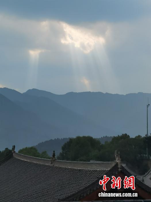 从佛光寺东大殿向外望去,远处山峦叠起。中新社记者 胡健 摄
