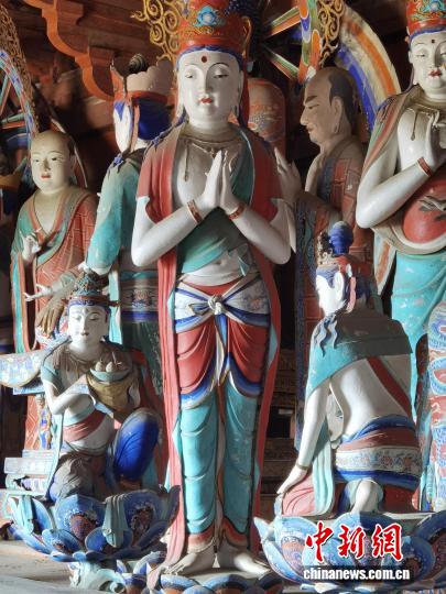 佛光寺东大殿的唐代彩塑。中新社记者 胡健 摄