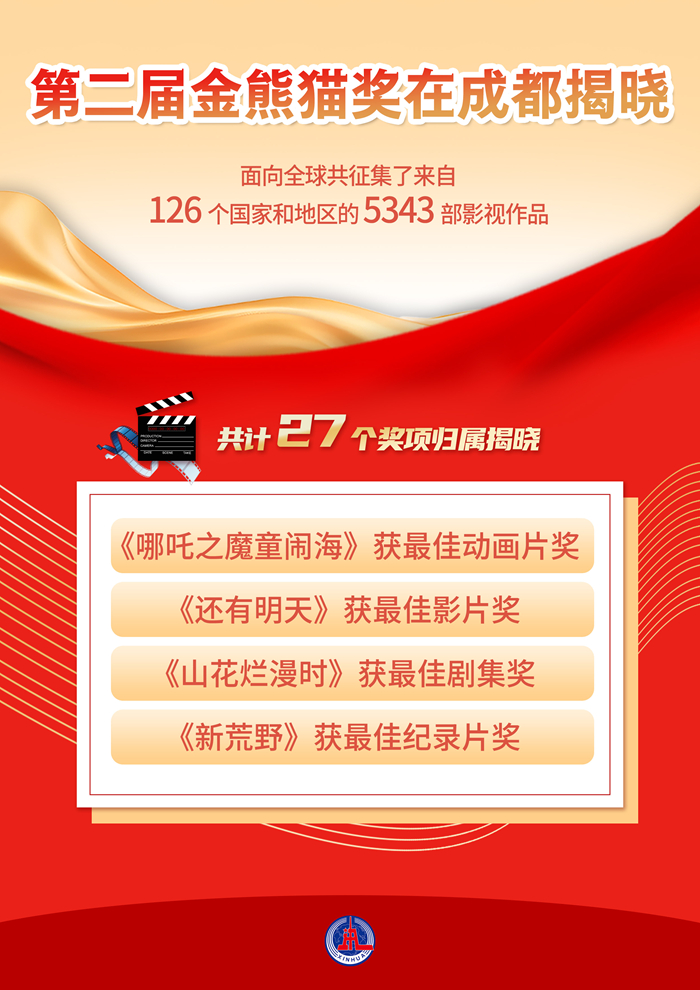 据悉,第二届金熊猫奖面向全球共征集了来自126个国家和地区的5343部影视作品。金熊猫奖永久落户四川,每两年举办一届,致力于通过评选全球优秀影视作品、举办文化交流活动,推动不同文明交流互鉴、弘扬全人类共同价值。