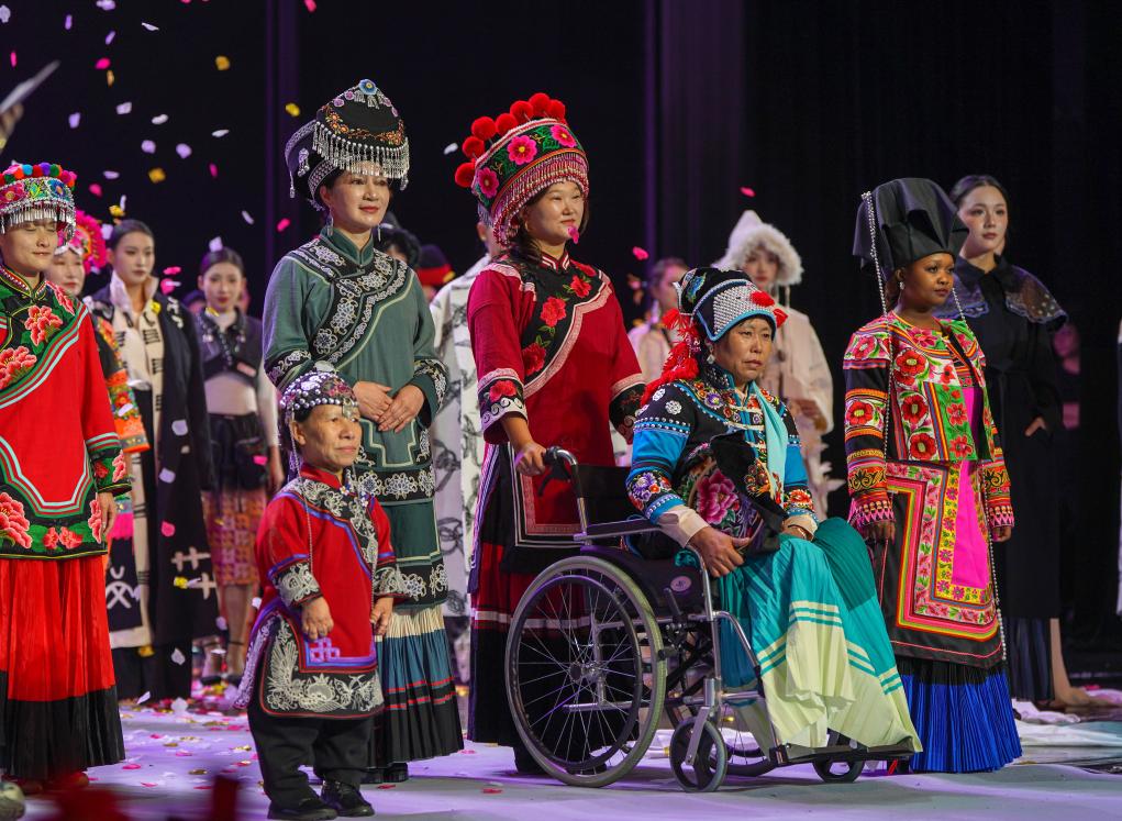 新华社昆明10月19日电(记者 彭奕凯、王安浩维)霓虹映照下,楚雄大剧院内织锦流光、彩绣生辉。T台上,融合了彝绣传统纹样与现代剪裁的服饰随灯光流转次第登场,在中外模特的专业演绎下,衣裙间深山彝寨的古老图案在聚光灯下熠熠闪烁。