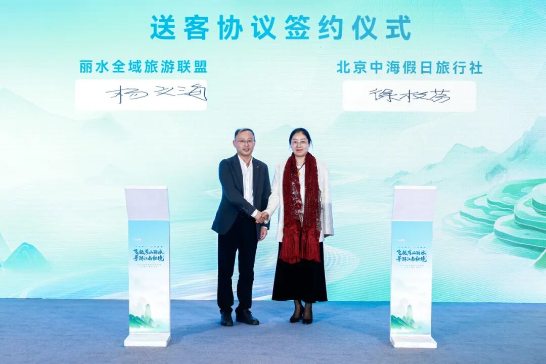 推介会上,丽水市文化广电旅游体育局与携程集团签署战略合作协议,未来将在旅游产品上线、精准营销推广等方面深化合作,共同挖掘航旅市场潜力。同时,丽水全域旅游联盟与北京中海假日旅行社签署客源输送协议,强化两地资源共享与旅客互送。
