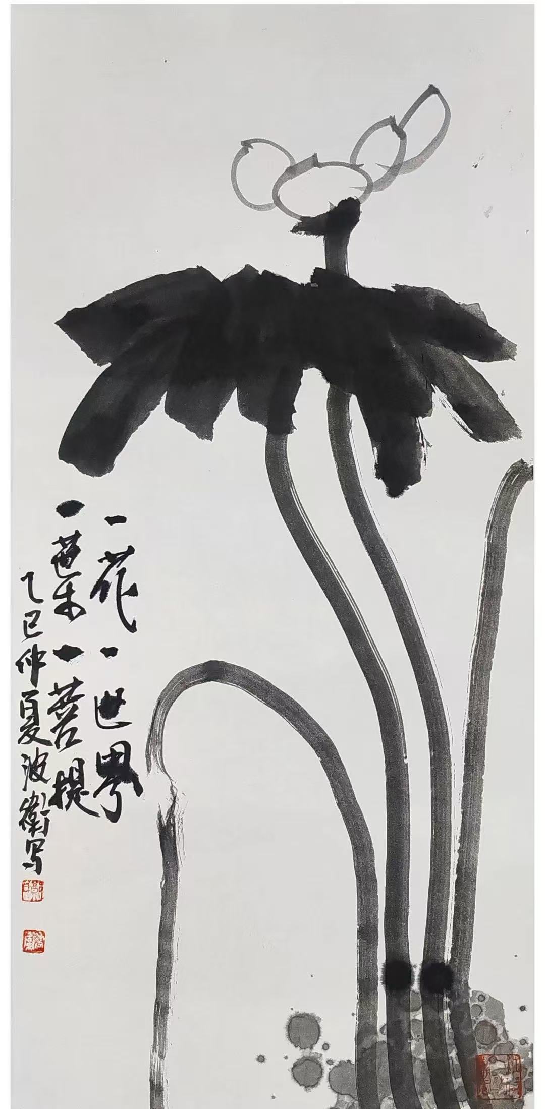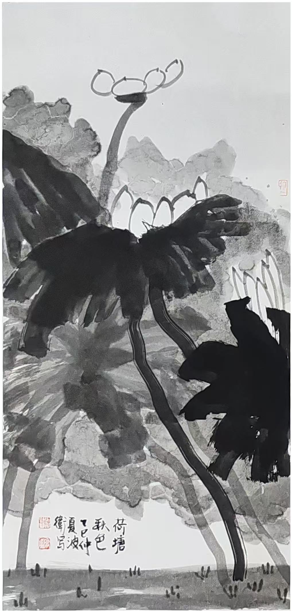 欣赏画家郑波卫的墨荷作品,常常惊叹于他落笔的大胆,仿佛每一次笔触都蕴含着无尽的勇气与决心;喜爱他呈献的天真,那是一种未经雕琢、纯粹自然的艺术表达;感同他师法古艺的恭敬,对传统艺术的敬畏之心溢于言表;又赞叹他面对当下的不羁与从容,在时代的浪潮中坚守自我,独树一帜。欣赏着这些作品,仿佛有一丝清风拂过面庞,带来丝丝凉意;又似有一缕幽香萦绕鼻尖,沁人心脾。