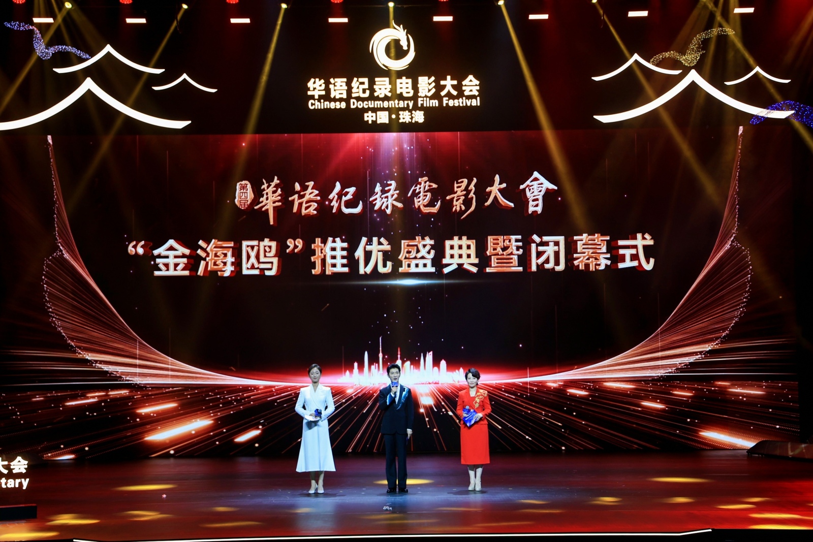 10月27日晚,第四届华语纪录电影大会推优盛典暨闭幕式在广东珠海举行。中国文联原党组成员、副主席、书记处书记夏潮,中央广播电视总台编务会议成员周振红共同为大会特别推荐纪录电影《您的声音》颁发证书。中央新闻纪录电影制片厂(集团)党委书记、董事长姚永晖,广东省委宣传部常务副部长、省电影局局长崔朝阳为特别贡献纪录电影机构代表颁发证书。