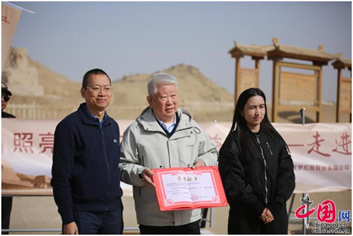 民丰县文旅局党组副书记、局长阿尔祖古丽·阿卜杜外力为中国文物保护基金会罗哲文基金管理委员会和马可波罗控股股份有限公司代表颁发捐赠证书。