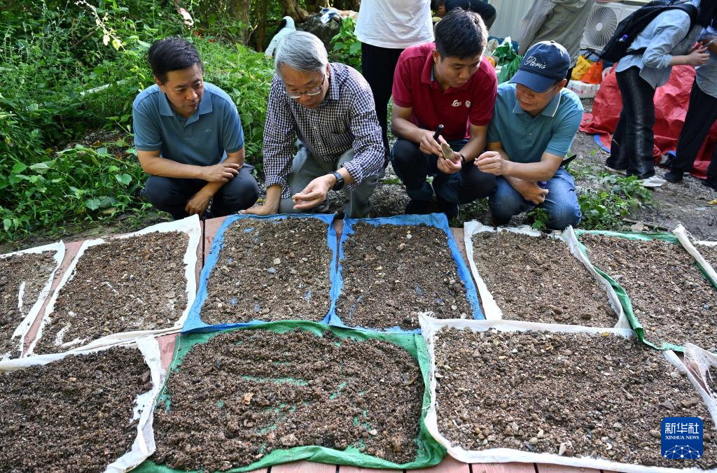 11月8日,考古专家在三亚落笔洞遗址观察出土标本。新华社记者 郭程 摄