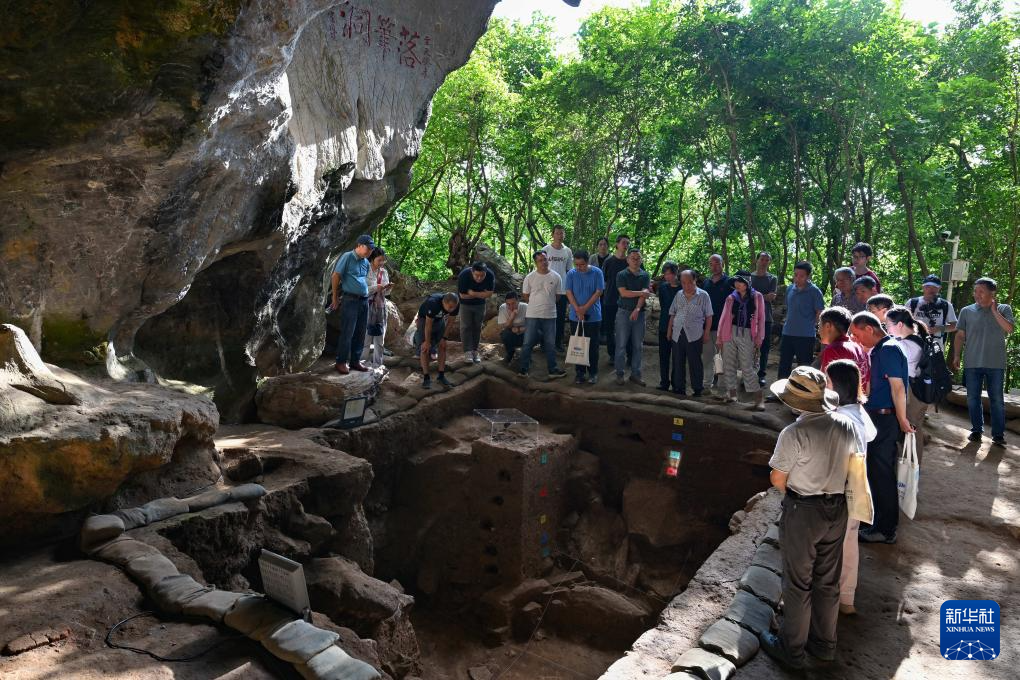 11月8日,考古专家在三亚落笔洞遗址观察发掘现场。新华社记者 郭程 摄