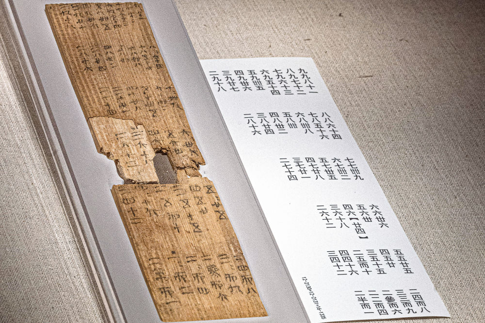 在武汉大学万林艺术博物馆展出的里耶秦简《九九表》( 6月6日摄)。本组图片均为新华社记者 肖艺九 摄