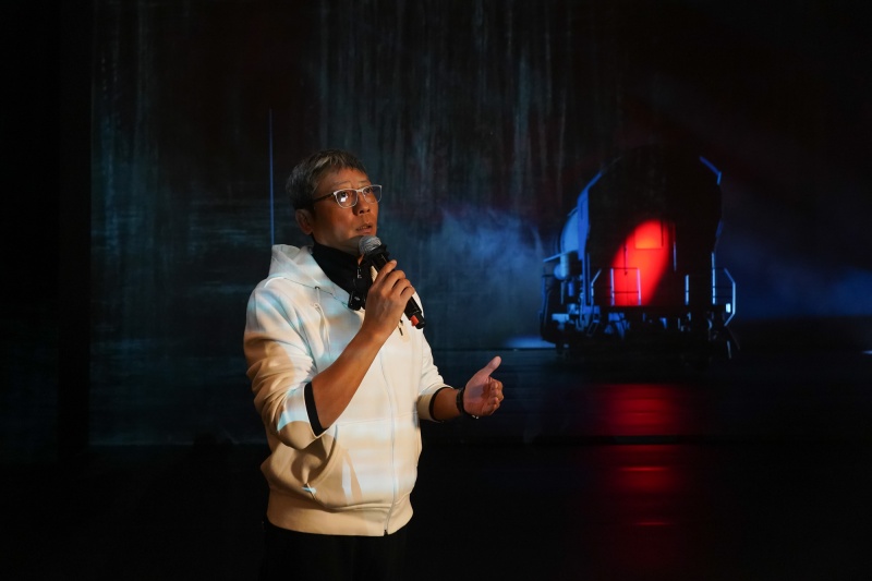 任冬生介绍《铁道游击队》的舞美视觉设计(国家大剧院供图 摄影:高尚)