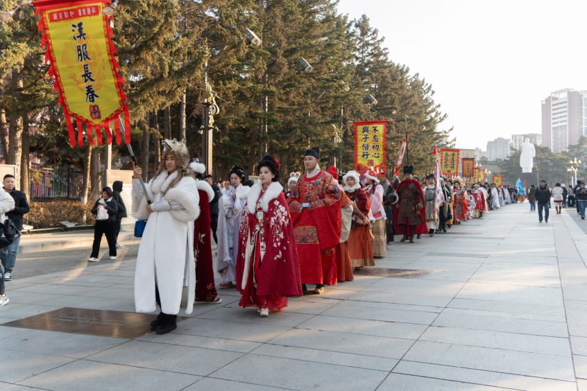 汉服,不仅仅是一件件衣裳,更蕴含着中华民族的织造技艺、美学思想、礼仪规范与哲学智慧,如今更成为文旅融合的生动载体。汉服长春负责人姜向复说:"长春连续八年举办汉服节出行活动,正是希望让传统文化走出书本、走进城市空间,与在地文旅基因相结合,让市民和游客在逛街、游览、打卡的过程中,自然而然地亲近传统文化、增强文化认同,推动中华优秀传统文化活态传承。"本次活动不仅是一场汉服爱好者的聚会,更是一次“汉服+文旅”的创新实践,汉服文化为冬日春城注入了典雅而鲜活的文化元素,成为城市公共文化生活中一道亮丽的风景线。