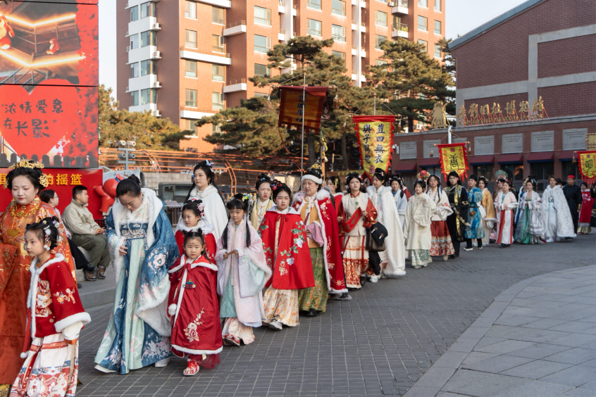 时值当代汉服复兴运动二十二载,为传承华夏衣冠文明,弘扬优秀传统文化,展现青年风采,繁荣红旗商圈,助力冬日长春文旅火热起来,11月22日,长春市第八届“1122汉服节”汉服出行活动在红旗街商圈举行。百余名汉服青年在长春市三大文旅潮流地标——长影旧址博物馆、红旗街万达广场与这有山进行汉服出行、汉服舞蹈快闪、汉服走秀等活动,在长影电影院进行了观影和学习交流。春城汉服爱好者们以衣为媒、以文化为魂,在城市文化场景中展开一场跨越古今的沉浸式展演,以流动的华章点亮春城冬日,共绘“汉服+文旅”的冬日生动图景。