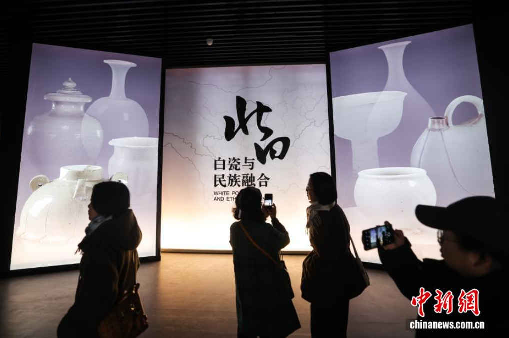 11月30日,山西太原,中国首个以“白瓷与民族融合”为主题的瓷器类展览——“北白——白瓷与民族融合”特展在山西博物院启幕,展览汇聚来自全国14家文博机构的200余件白瓷珍品。中新社记者 武俊杰 摄