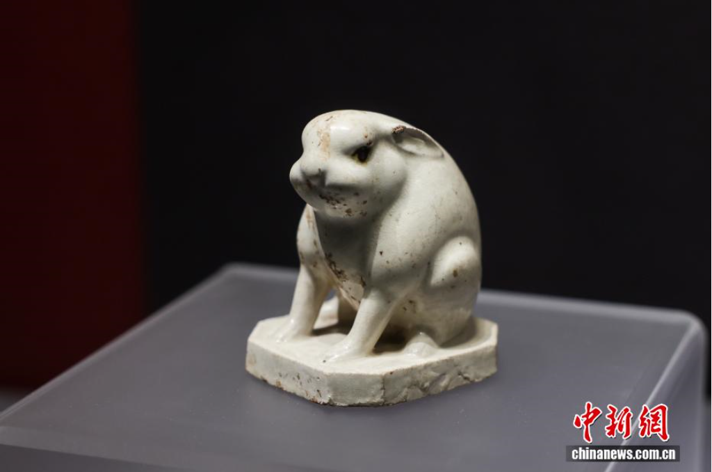 11月30日,山西太原,中国首个以“白瓷与民族融合”为主题的瓷器类展览——“北白——白瓷与民族融合”特展在山西博物院启幕,展览汇聚来自全国14家文博机构的200余件白瓷珍品。图为白瓷兔。中新社记者 武俊杰 摄