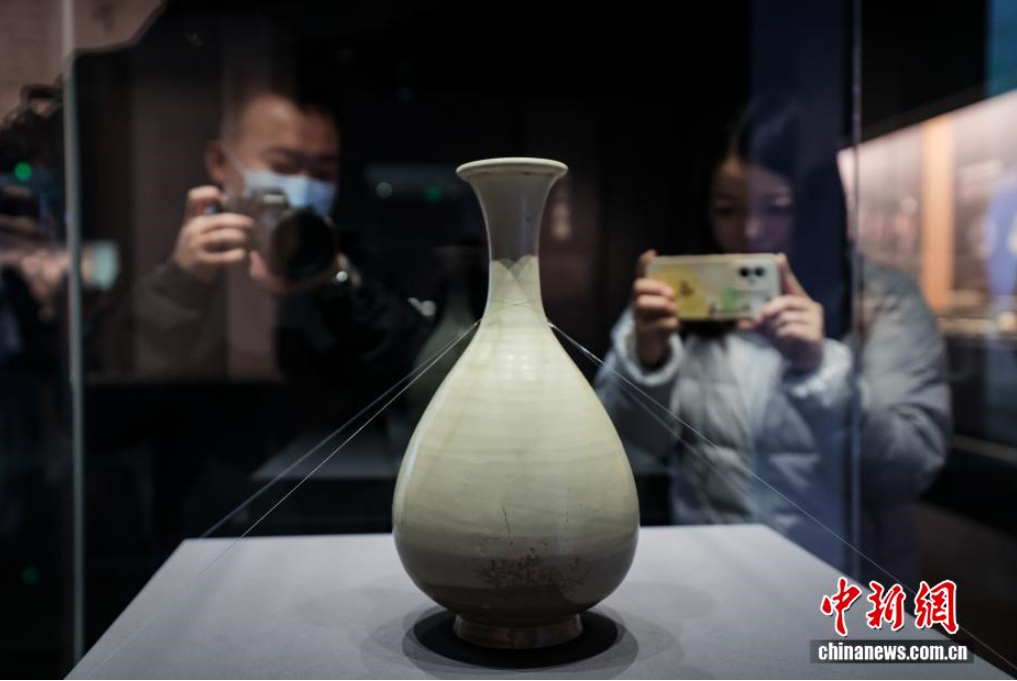 11月30日,山西太原,中国首个以“白瓷与民族融合”为主题的瓷器类展览——“北白——白瓷与民族融合”特展在山西博物院启幕,展览汇聚来自全国14家文博机构的200余件白瓷珍品。图为白瓷玉壶春瓶。中新社记者 武俊杰 摄