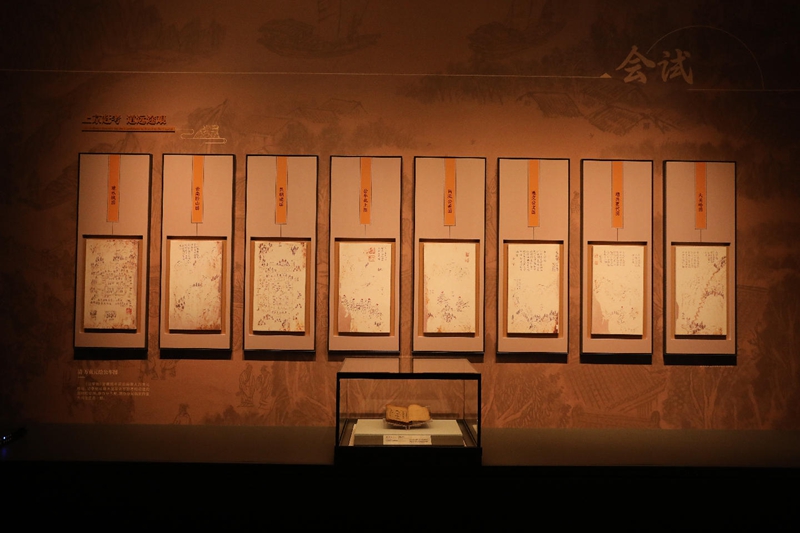 第二部分“杏园征途”展示科举士子们十年寒窗的奋斗历程。展览以清代科举流程为样本,通过童试、乡试、会试、殿试四级考选场景复原,带领观众穿越时空体验“十年寒窗——四级考试——一朝功名”的士子人生,生动再现了古代士子从童生到进士的艰辛历程与辉煌成就。观众可在此感受古代士子的生活状态与精神风貌,领略科举制度对个人命运与社会发展的深远影响。