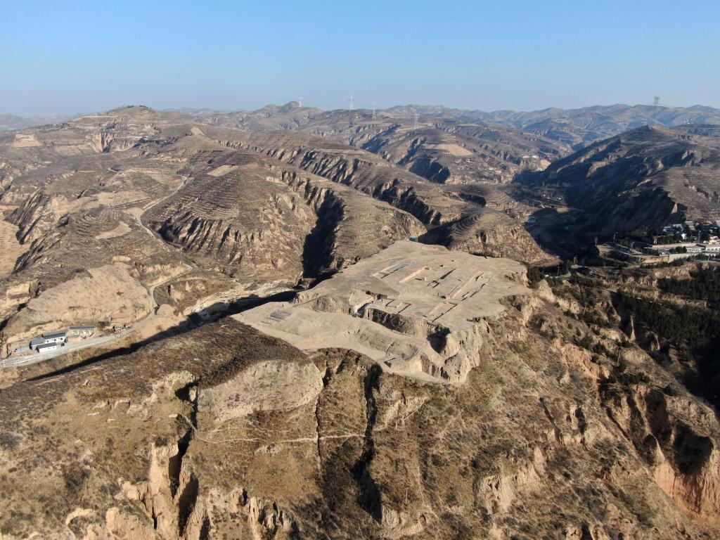 12月9日拍摄的陕西清涧寨沟遗址寨塬盖夯土建筑群(无人机照片)。新华社记者 李一博 摄
