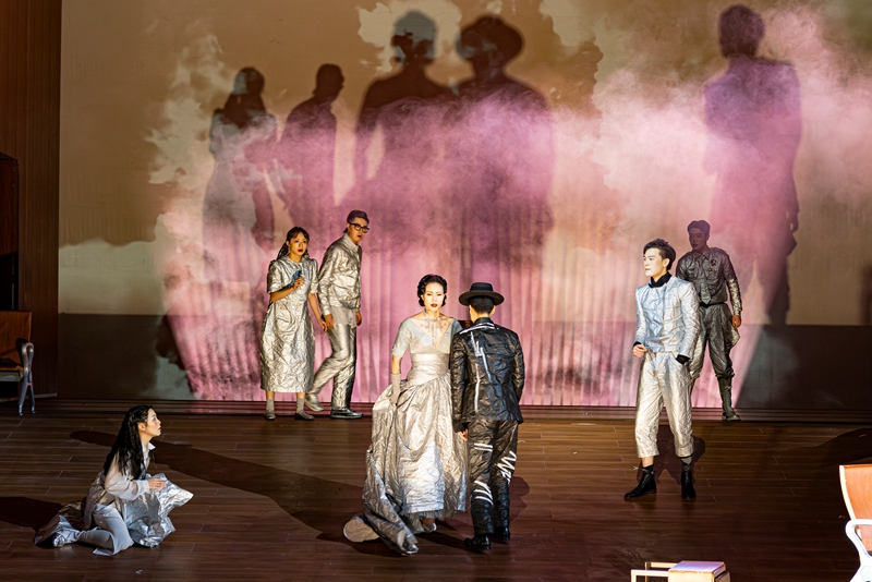 “表演契诃夫戏剧唯一的原则就是不能把它给‘演’出来,我们也希望在舞台上找到这种靠近生活的表演方式与属于话剧的独特表达语言。”围绕着导演的创作意图,中格两国创作者共同合作,让舞台语汇丰富而不繁冗,多种元素的有机结合让全剧的叙事流畅有序,原著的表达也因此显得生动有趣,让观众沉浸其中。