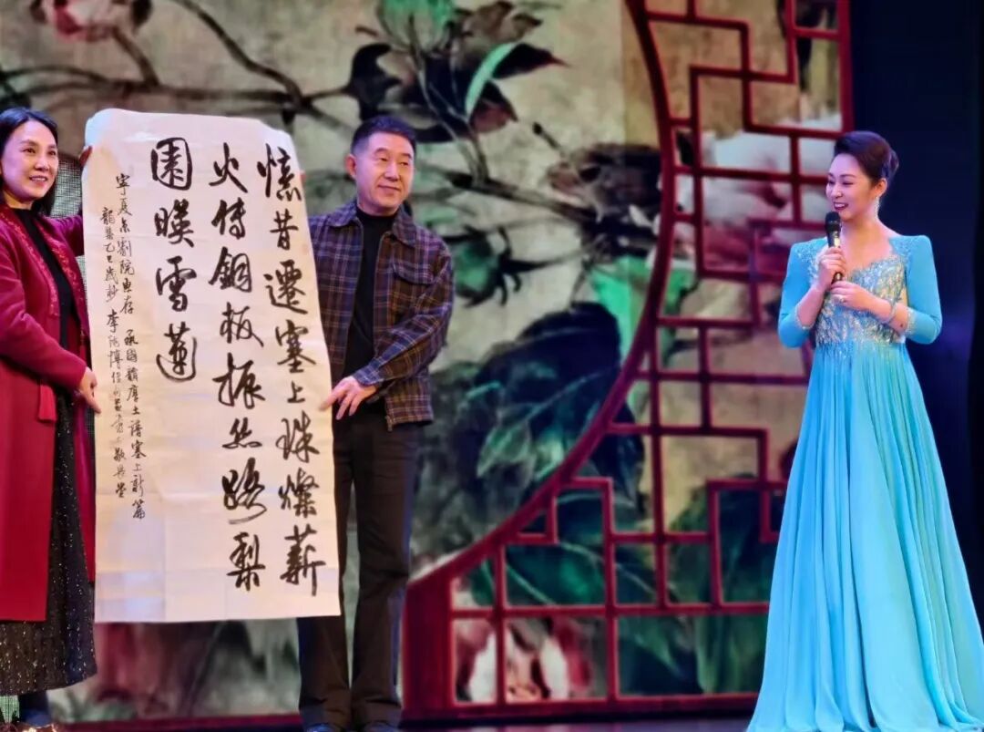 李纯博先生出身梨园世家的自幼熏陶,以及对“琴棋书画”皆须通透的艺术执着。师从萧劳、欧阳中石、徐之谦、刘炳森、周慧珺、郑彦伟等先生。1994年至今在中国美术馆、民族文化宫及各地举办个人书法展及研讨会。出版《李纯博诗书-宁夏颂》《纯博临池墨迹》等数十部书法专著、字帖。曾为1987版电视连续剧《红楼梦》在内的上百部电视片题写片名、字幕。曾为200本以上正式出版物题写书名。这场“艺览宁夏·惠享生活”惠民展演,因而更像一次以琴为笔、以曲为墨的立体文化书写,在宁夏的土地上,勾勒出一位融通之艺家的精神图谱与传统戏曲生生不息的脉络。李纯博有着深厚的京胡功底。他的操琴,并非简单的伴奏,而是与台上演员呼吸相和、神魂相交的对话;他现场操琴演绎《打龙袍》《赵氏孤儿》《穆桂英挂帅》等经典唱段,琴弓推拉之间,演奏出精妙的旋律线条,正如其恩师欧阳中石先生所言,李纯博深谙书法之“律动”与戏曲音乐“板眼”之间的审美通感。展演间隙,李先生将一幅亲笔题诗赠予宁夏京剧院,其作品被业内人士赞为“格调高逸、儒雅隽永、刚柔相济”。对于此次助力宁夏京剧院惠民演出,李纯博表示:非常高兴再次来宁夏,受到宁夏京剧院的邀请出席惠民演出并登台献艺,与宁夏京剧院的老师们共同合作为广大观众服务,为振兴国粹做出自己的贡献。