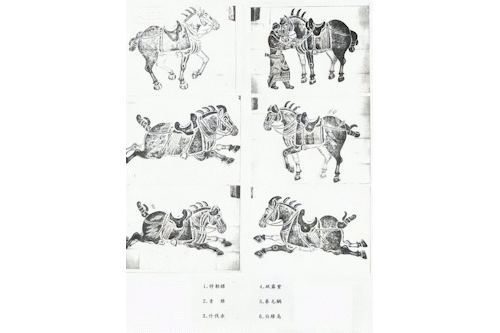 大唐盛世,马文化迎来黄金时代,“复活”的马文物更添豪情与浪漫。西安碑林博物馆的昭陵六骏石刻,六匹功勋战马正并肩驰骋,由画圣阎立本绘制的画稿、雕刻大师阎立德复刻的身形、李世民题撰的赞语、欧阳询书丹的文字,在动态中融为一体。它们或扬蹄冲锋,或低头喘息,每一道纹路都仿佛刻着沙场的硝烟,每一个姿态都藏着帝王的感念,四位名家的心血,让这组石刻成为跨越千年的艺术与历史丰碑。