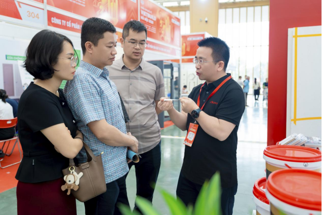 此次参展,东方雨虹针对越南高温多雨、高腐蚀的气候特征,重点展示了适配当地应用场景的耐候防水、节能隔热、工业防护等产品系统,覆盖民用商用、基建工程等场景,并将先进绿色建材科技与当地气候特点、法规标准、营建文化相结合,形成可执行、可验证、可持续的本地化技术与服务范式。展会期间,东方雨虹海外发展集团与海外民建事业部立足当地市场需求,与经销商、工程承包方及合作伙伴开展多场专项会谈,围绕材料选型、系统适配、供货支持等关键议题深入对接,促成多个高质量合作契机,为后续持续深耕区域市场筑牢根基。