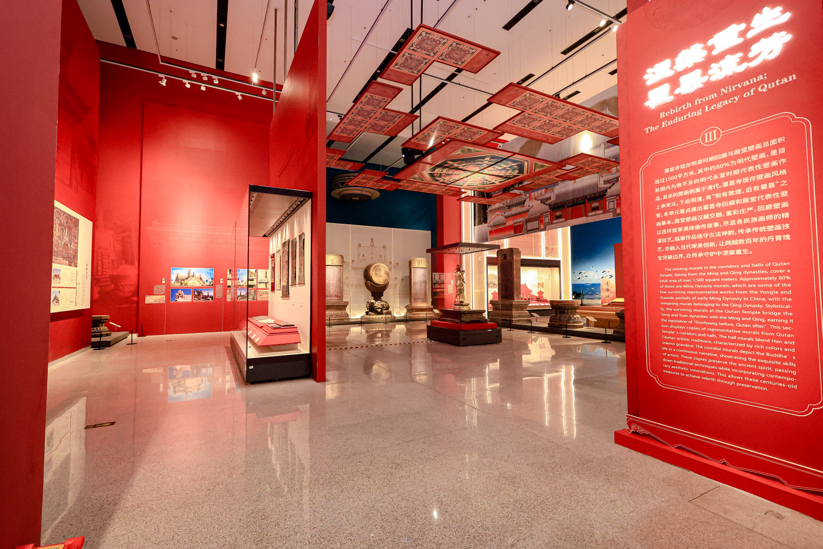 始建于明洪武年间的瞿昙寺,由明太祖朱元璋钦赐寺名,历经永乐、洪熙、宣德四朝倾力营建,是明初中央政权经略西北、巩固边疆的国家记忆载体,更是明代“因俗以治”“多封众建”边疆治理方略的鲜活实物标本。作为西北地区现存最完整、规模最大的明代寺院建筑群,瞿昙寺素有“高原小故宫”美誉,其历史与艺术价值在本次展览中得到系统解读。其承载的各民族交往交流交融深厚历史,既是中华文明多元一体格局的生动注脚,也是本次展览核心的叙事内核。